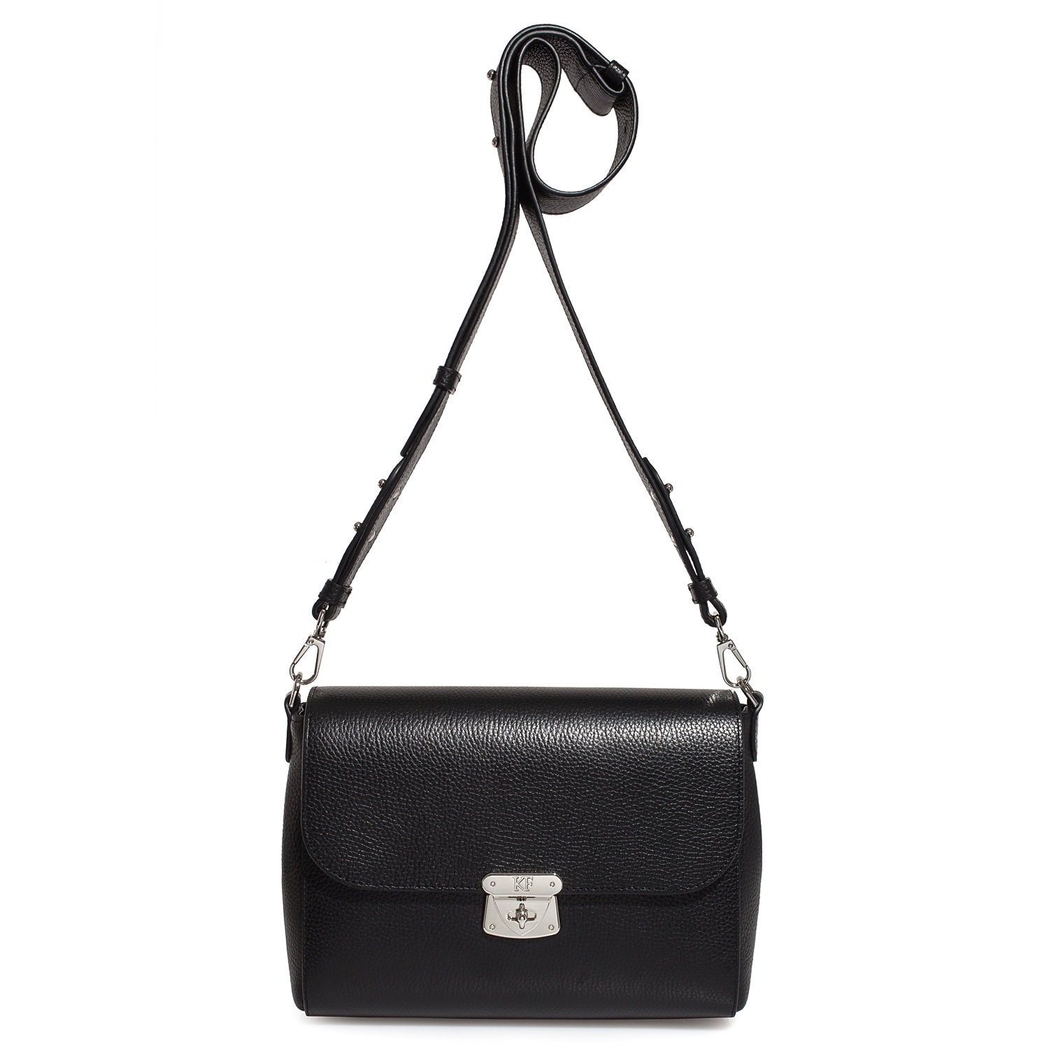 Black genuine leather woman shoulder bag from ukrainian designer Katerina Fox. This elegant, versatile and practical bag. It is ideal for the office, for walks, for a party. The valve is made of genuine leather crocodile print. Inside the bag is one large compartment and a convenient zippered pocket for small items, closes the bag on the clasp. Bag KF comfortable to wear on the shoulder or across the shoulder, the handle length is adjustable. The bag is comfortable to wear on the shoulder or across the shoulder, the handle length is adjustable. If you are planning to buy excellent leather bag at an affordable price, this handbag is the right choice!