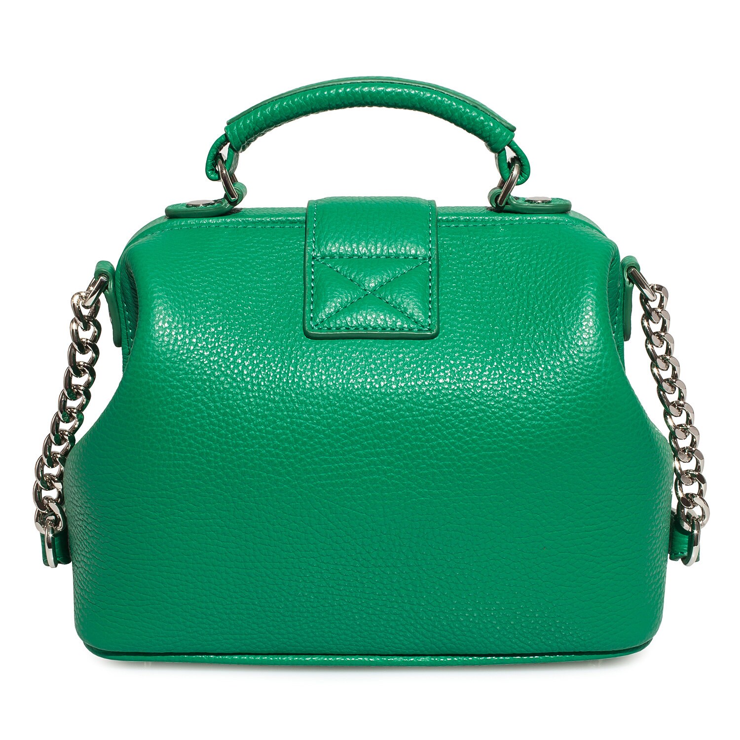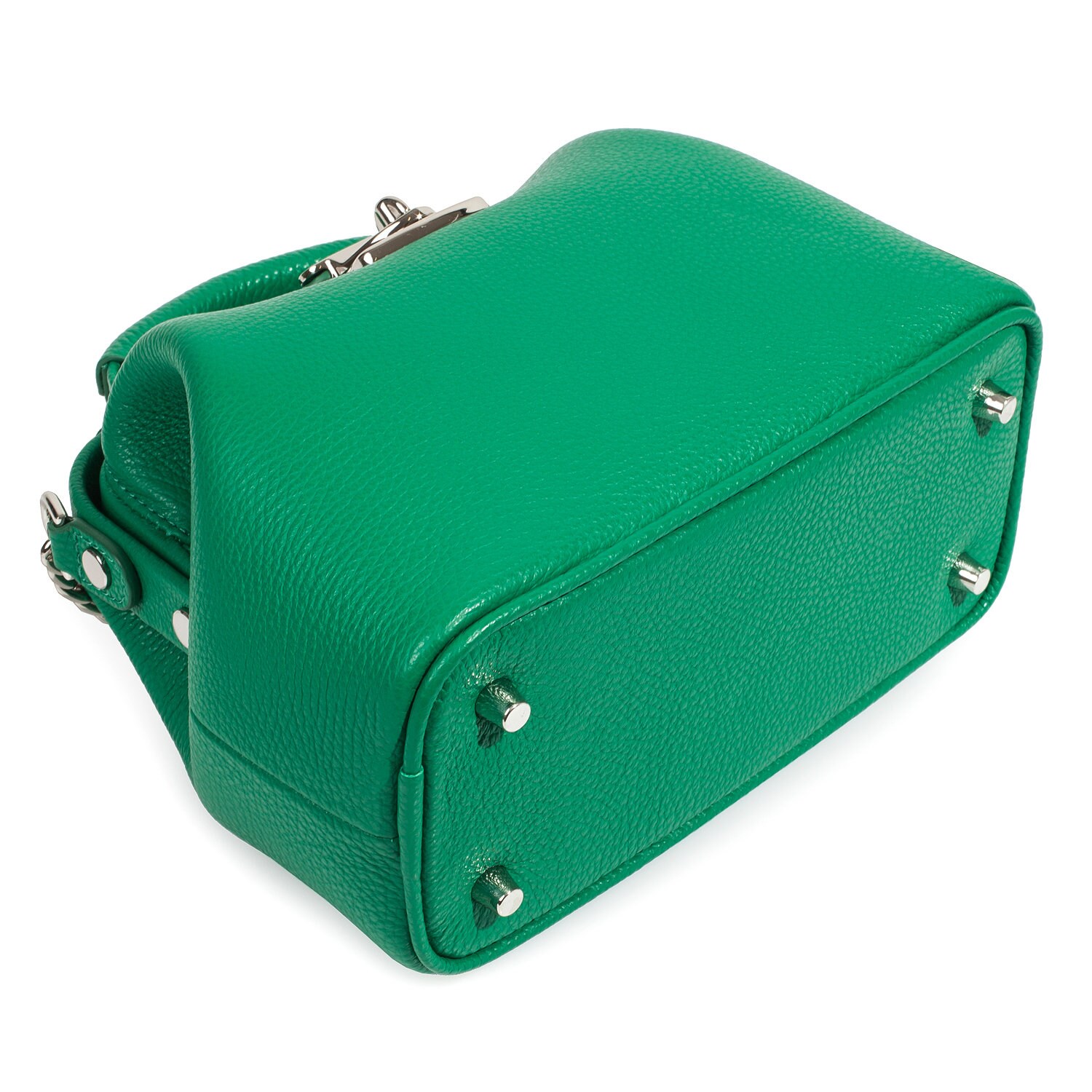 Green genuine leather handbag from ukrainian designer Katerina Fox. This model is designed for women who appreciate the sleek design combined with functionality and comfort. High-quality and reliable hardware ensure long service bags. The internal space of a bag is equipped with one spacious compartment and one patch-pocket and one zipper pocket. The bag is closed with a clasp. The bottom of the bag is protected with metal legs. There is a long handle that allows you to wear the bag on the shoulder. The kit also includes a storage bag.