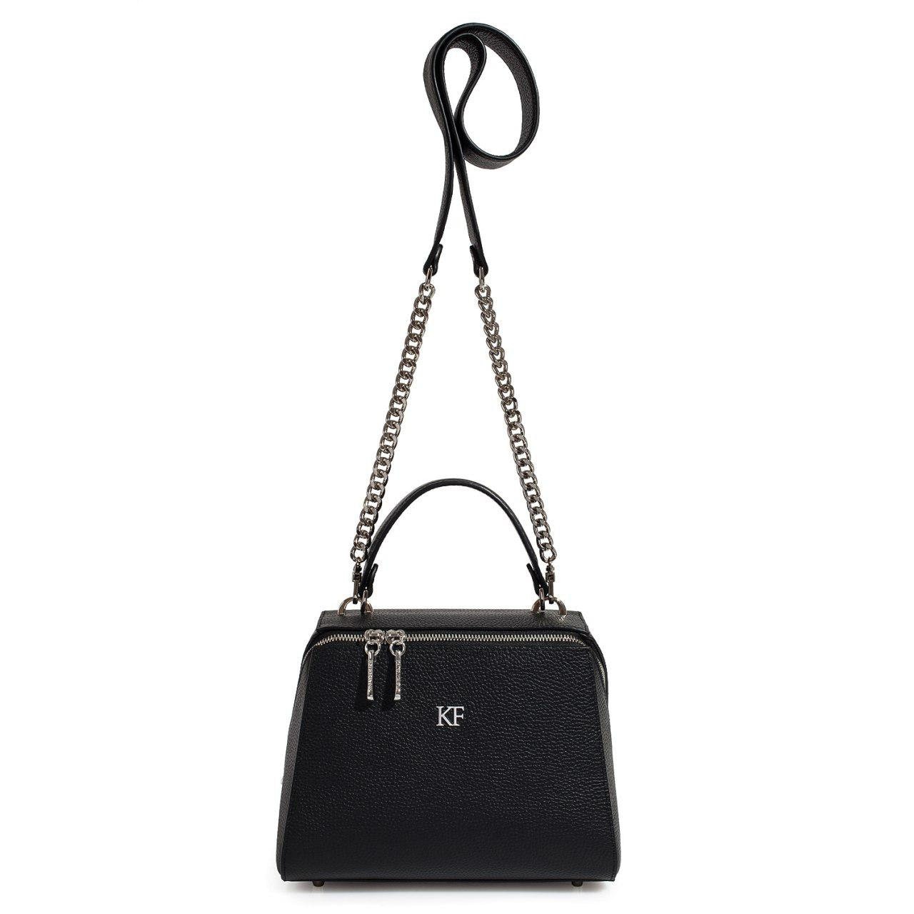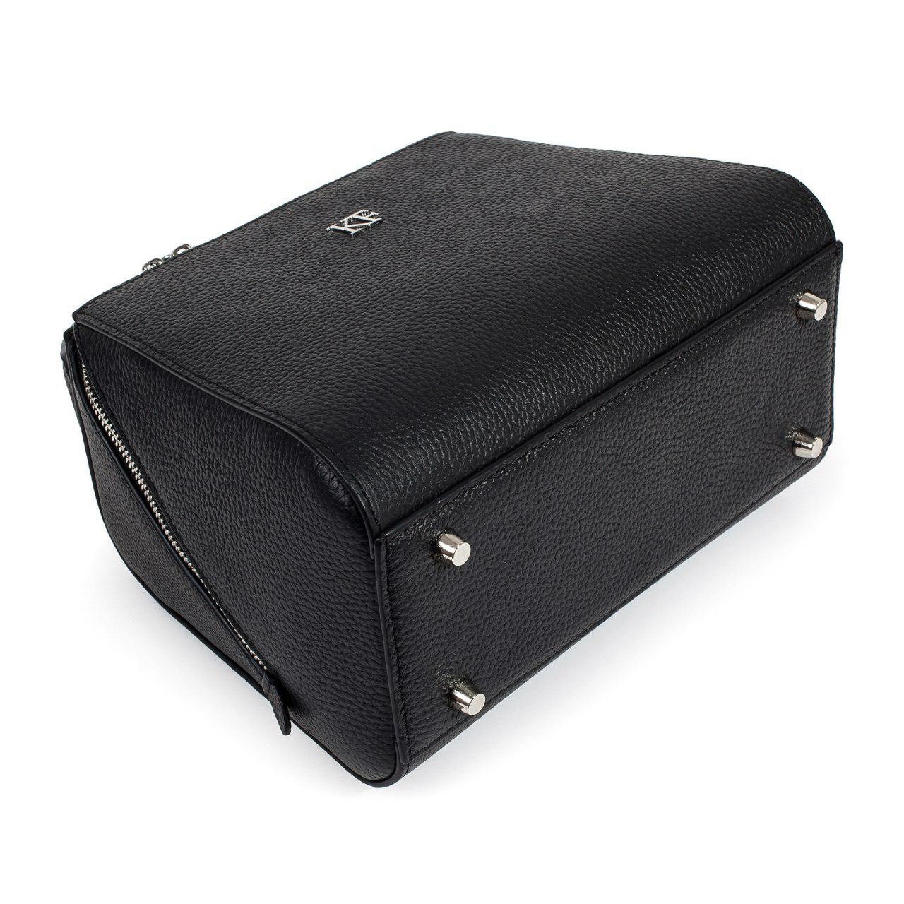 Black genuine leather handbag from ukrainian designer Katerina Fox. This model is designed for women who appreciate the sleek design combined with functionality and comfort. High-quality and reliable hardware ensure long service bags. The internal space of a bag is equipped with one spacious compartment and two patch-pockets and one zipper pocket. The bag is closed with a zipper. The bottom of the bag is protected with metal legs. There is a long handle that allows you to wear the bag on the shoulder. The kit also includes a storage bag.