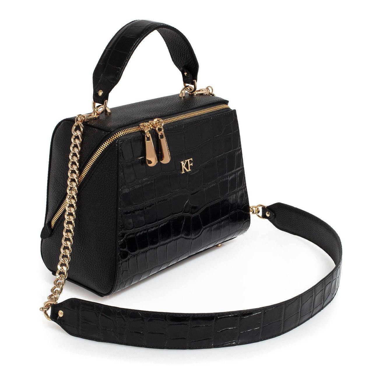 Black genuine leather handbag from ukrainian designer Katerina Fox. This model is designed for women who appreciate the sleek design combined with functionality and comfort. High-quality and reliable hardware ensure long service bags. The internal space of a bag is equipped with one spacious compartment and two patch-pockets and one zipper pocket. The bag is closed with a zipper. The bottom of the bag is protected with metal legs. There is a long handle that allows you to wear the bag on the shoulder. The kit also includes a storage bag.
