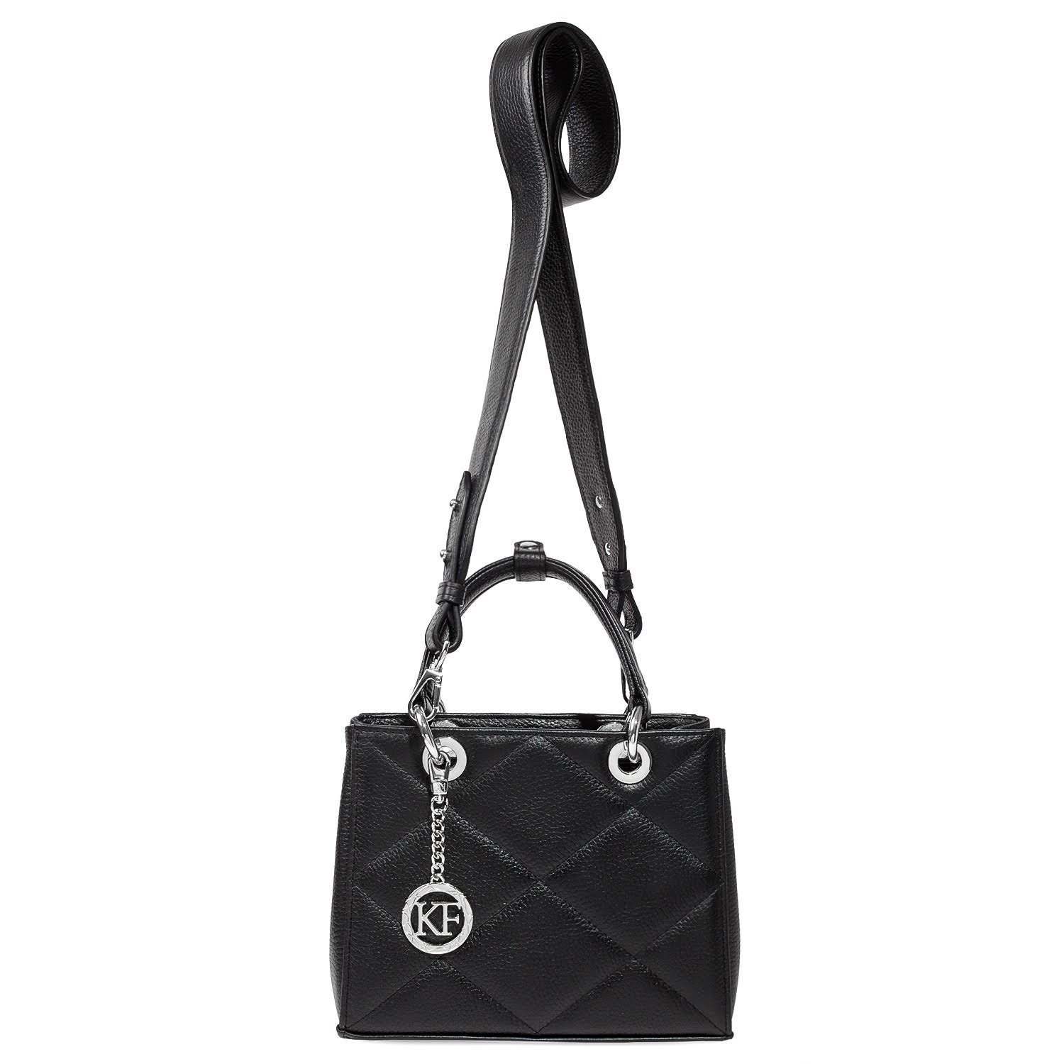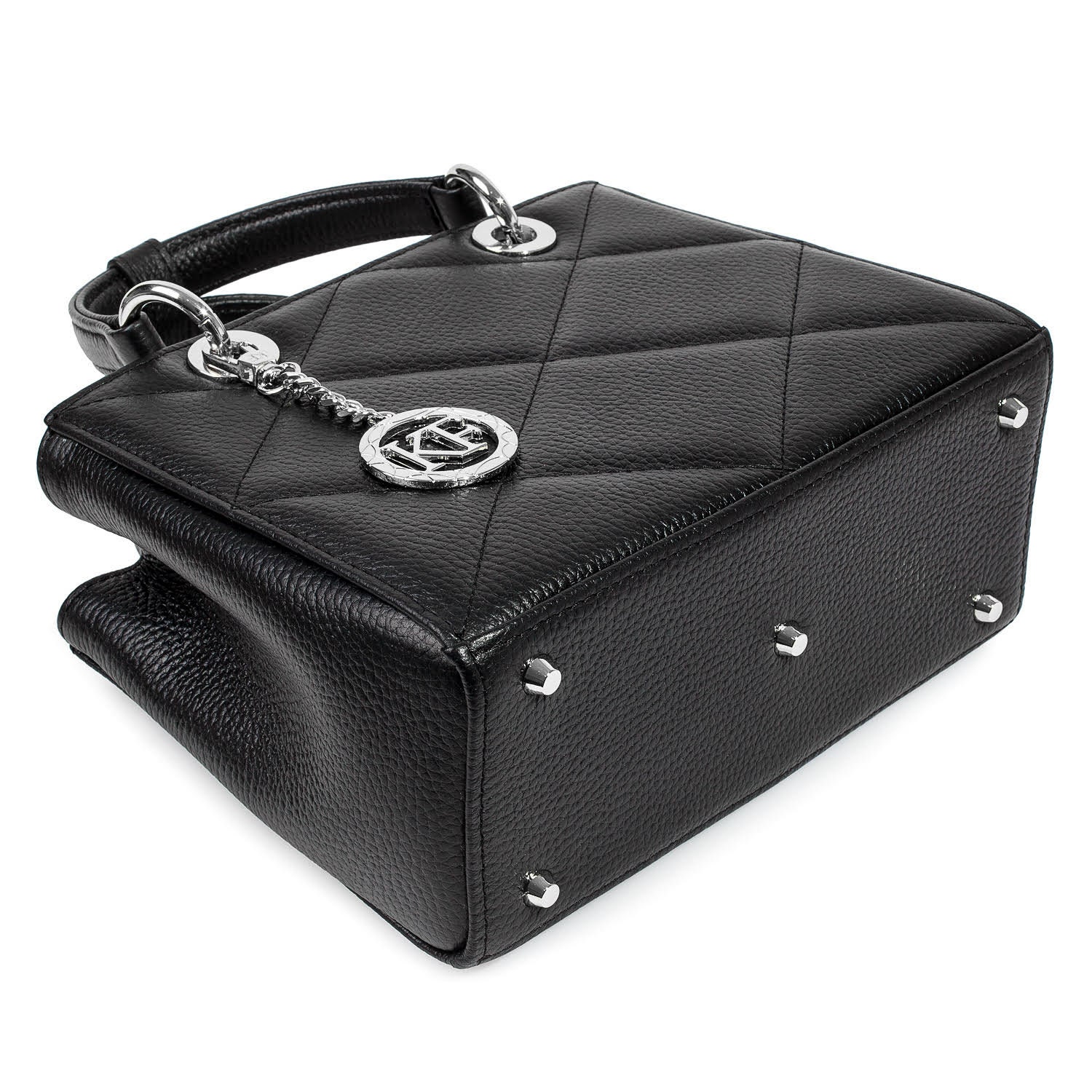 Black genuine leather handbag from ukrainian designer Katerina Fox. This model is designed for women who appreciate the sleek design combined with functionality and comfort. High-quality and reliable hardware ensure long service bags. Inside the bag are three spacious compartments, one with zip, two patch pockets and one zippered pocket closes with a zipper. The bottom of the bag protected by metal feet.